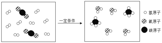 (5)一定條件下,CO2和H2反應(yīng)生成CH4和H2O。請(qǐng)?jiān)谝韵驴驁D中將該反應(yīng)的微觀粒子補(bǔ)充完整___。