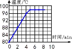 溫度/℃ | 80 | 84 | 88 | 92 | 96 | 98 | 98 | 98 |