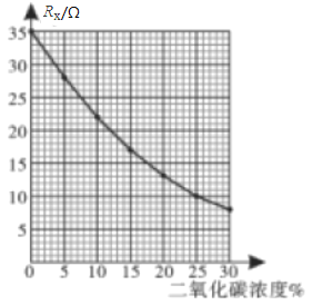 ②由表中數據可知,當周圍空氣中二氧化碳濃度為10%時,氣敏電阻大小為R′x=22Ω,電路中電流I=0.1A,根據歐姆定律和電阻的串聯規律,R0=