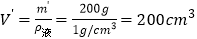 (3)一個能裝下200g酒精的瓶子,能裝下200g這種液體;這些液體的體積是200cm3。