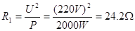 可知,電熱絲R1的電功率最大Pmax=2000W,所以電熱絲R1的電阻