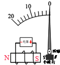 (2)如圖乙為電磁鐵磁性強(qiáng)弱演示儀,其原理是:當(dāng)電磁鐵的磁性增強(qiáng)時,小磁片因受到電磁鐵的作用而發(fā)生轉(zhuǎn)動,使得指針指示的數(shù)值增大.請在圖中標(biāo)出電源正負(fù)極.