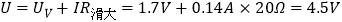(3)閉合開關S,觀察到電壓表和電流表示數分別為1.7V和0.14A。繼續實驗又測得兩組數據,記錄表格中。 則該同學所用電源電壓為_________V.