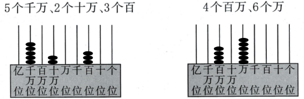 5個(gè)千萬(wàn)、2個(gè)十萬(wàn)、3個(gè)百 4個(gè)百萬(wàn)、6個(gè)萬(wàn)