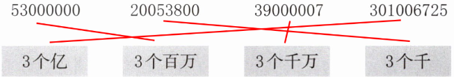 2. 下面每個(gè)數(shù)中的“3”分別表示多少?用線連一連。