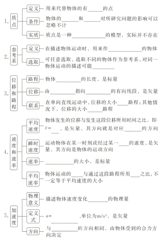 4. 平均速度:物體發生的位移與發生這段位移所用時間之比,即$\overline{v}=$$\frac{\Delta x}{\Delta t}$,是矢量,其方向就是對應位移的方向