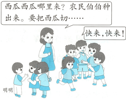 西瓜西瓜哪里來?農(nóng)民伯伯種出來。要把西瓜切……