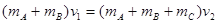 (3)三者第一次有共同速度時(shí),彈簧處于伸長(zhǎng)狀態(tài),A、B在前,C在后。此后C向左加速,A、B的加速度沿桿向右,直到彈簧恢復(fù)原長(zhǎng),故A、B繼續(xù)向左減速,若能減速到零則再向右加速。