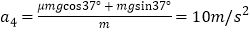 ,然后A開始相對傳送帶下滑,速度小于傳送帶的速度,故受到的摩擦力方向仍向下,所以此時的加速度大小為